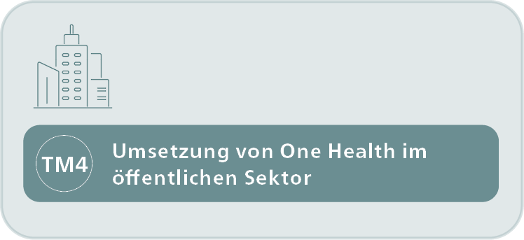 In der Schweiz gibt es auf nationaler, kantonaler und kommunaler Ebene mehrere positive Beispiele für Zusammenarbeit zwischen Gesundheitsbereichen, aus denen Erkenntnisse gewonnen werden können. Im TM4 werden diese Beispiele von Akteuren und Betroffenen aus erster Hand vorgestellt. Sie berichten über die Vorteile, Schwierigkeiten und Lösungen, die bei der gemeinsamen Ausarbeitung von Strategien und Projekten entstehen können. Die Ergebnisse der Evaluierung dieser Initiativen werden im Hinblick auf den sozio-ökonomischen Mehrwert diskutiert. Dieses Modul wird den Teilnehmenden helfen, One Health-Projekte im öffentlichen Sektor erfolgreich zu planen und umzusetzen.